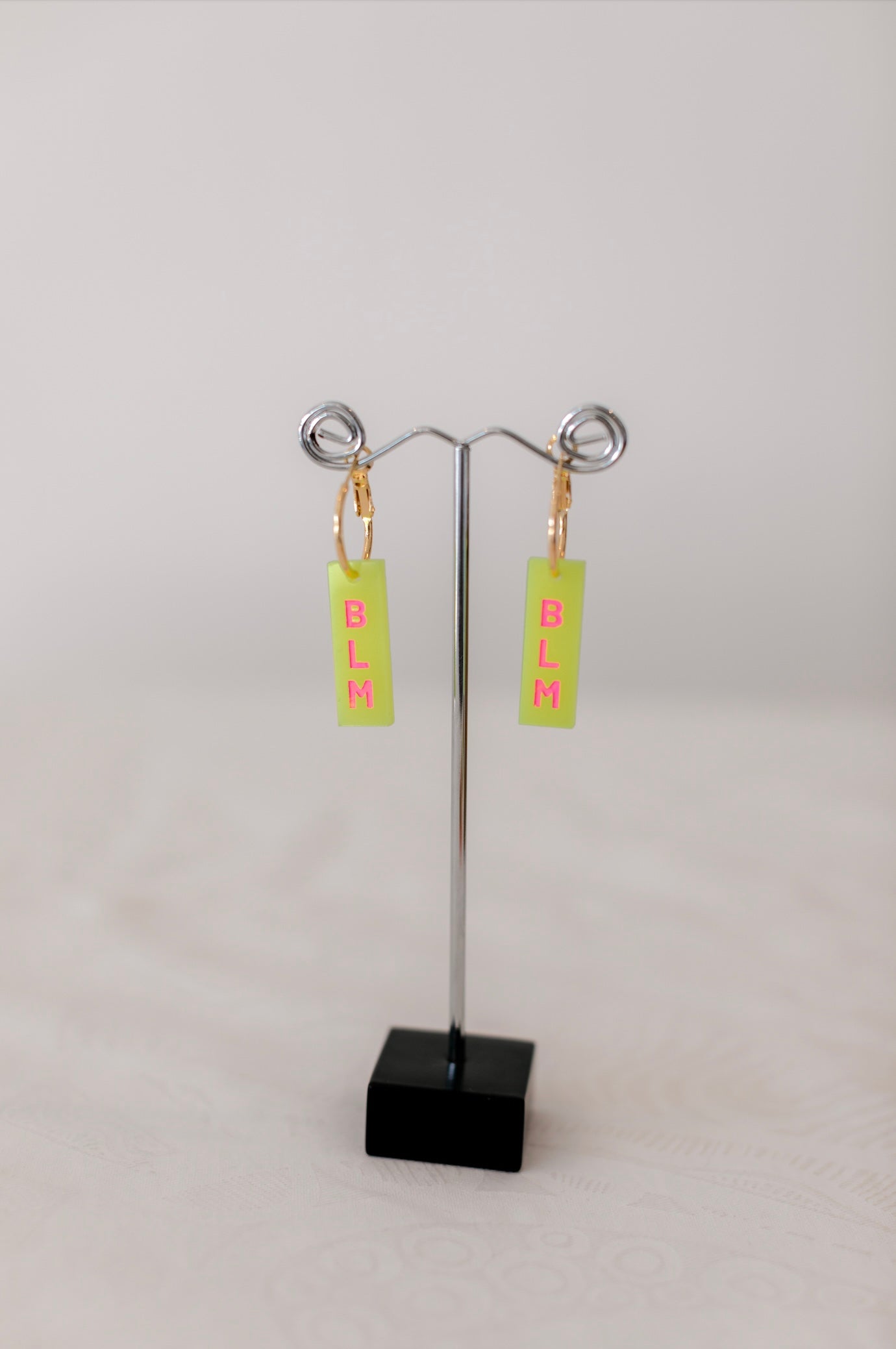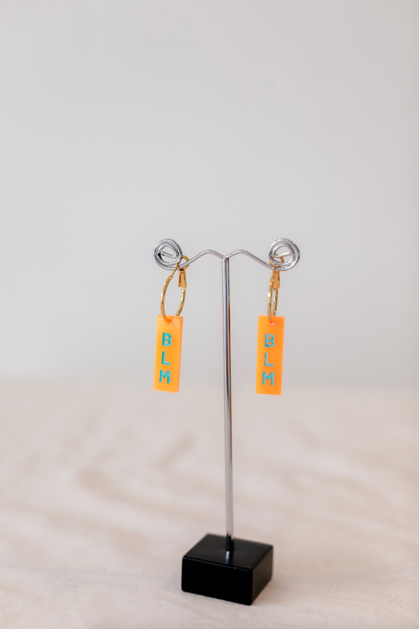 Lightweight dangle earrings fixed to a stainless steel hoop with gold look coating.