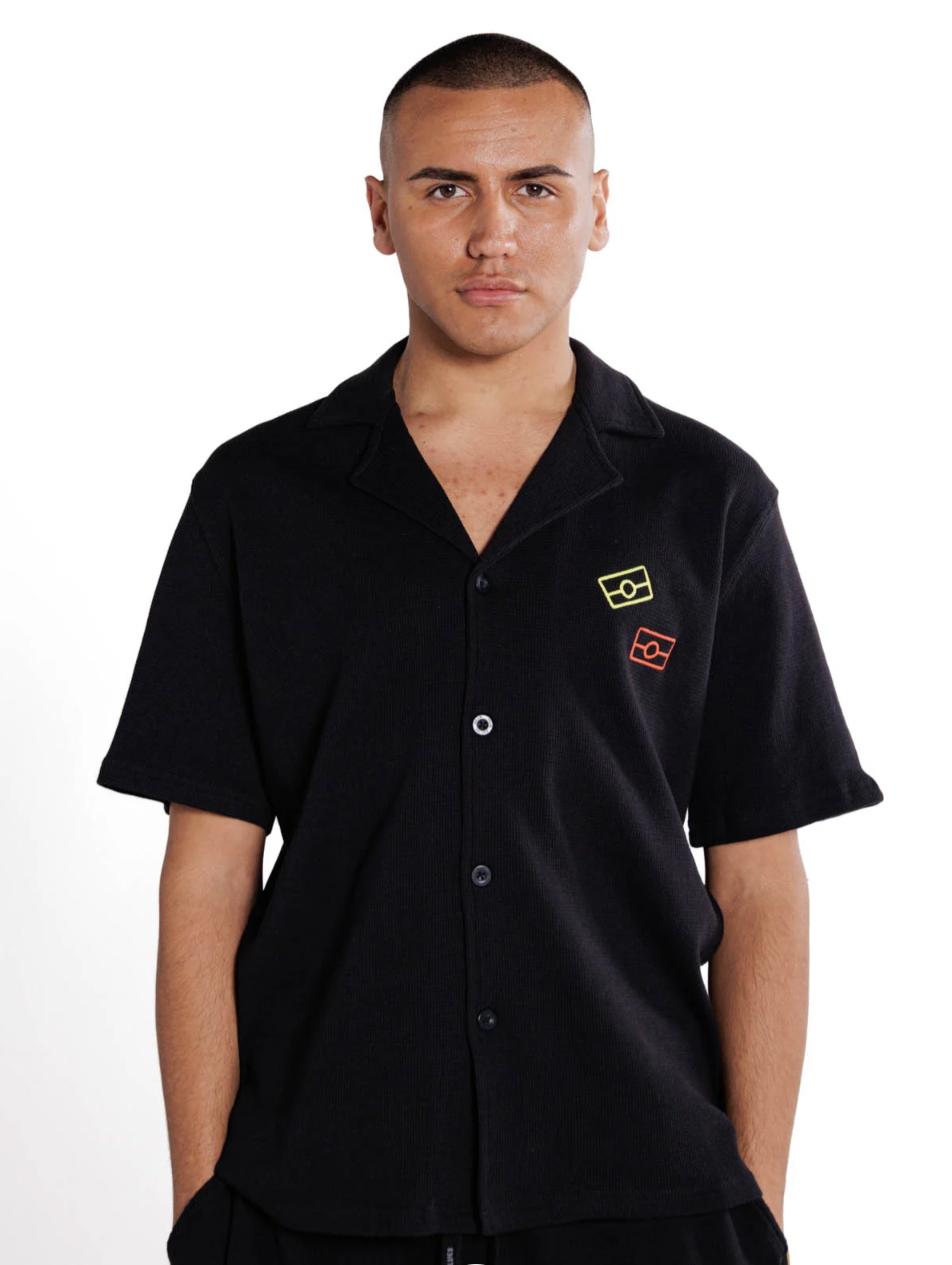 This quality comfy Waffle Lounge shirt is designed to carry you through every season and occasion! With red and yellow embroidered flags on the chest and a classy black flag on the back, this shirt will take you from corporate wear to lounge wear with ease.