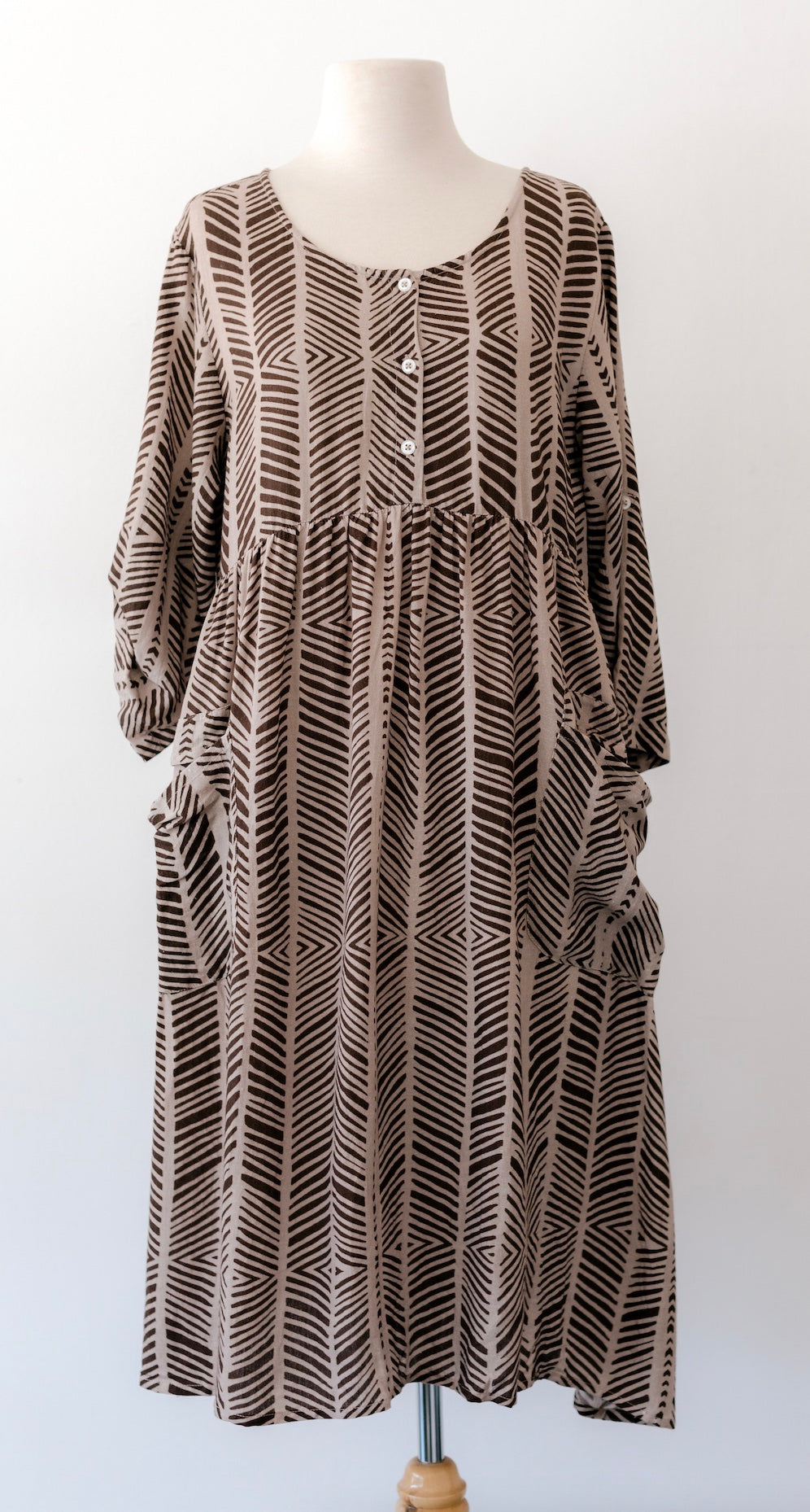 This smock dress was designed by Palawa/Yorta Yorta and Gamilaraay/Wonnarua Artist, Debra Beale.
