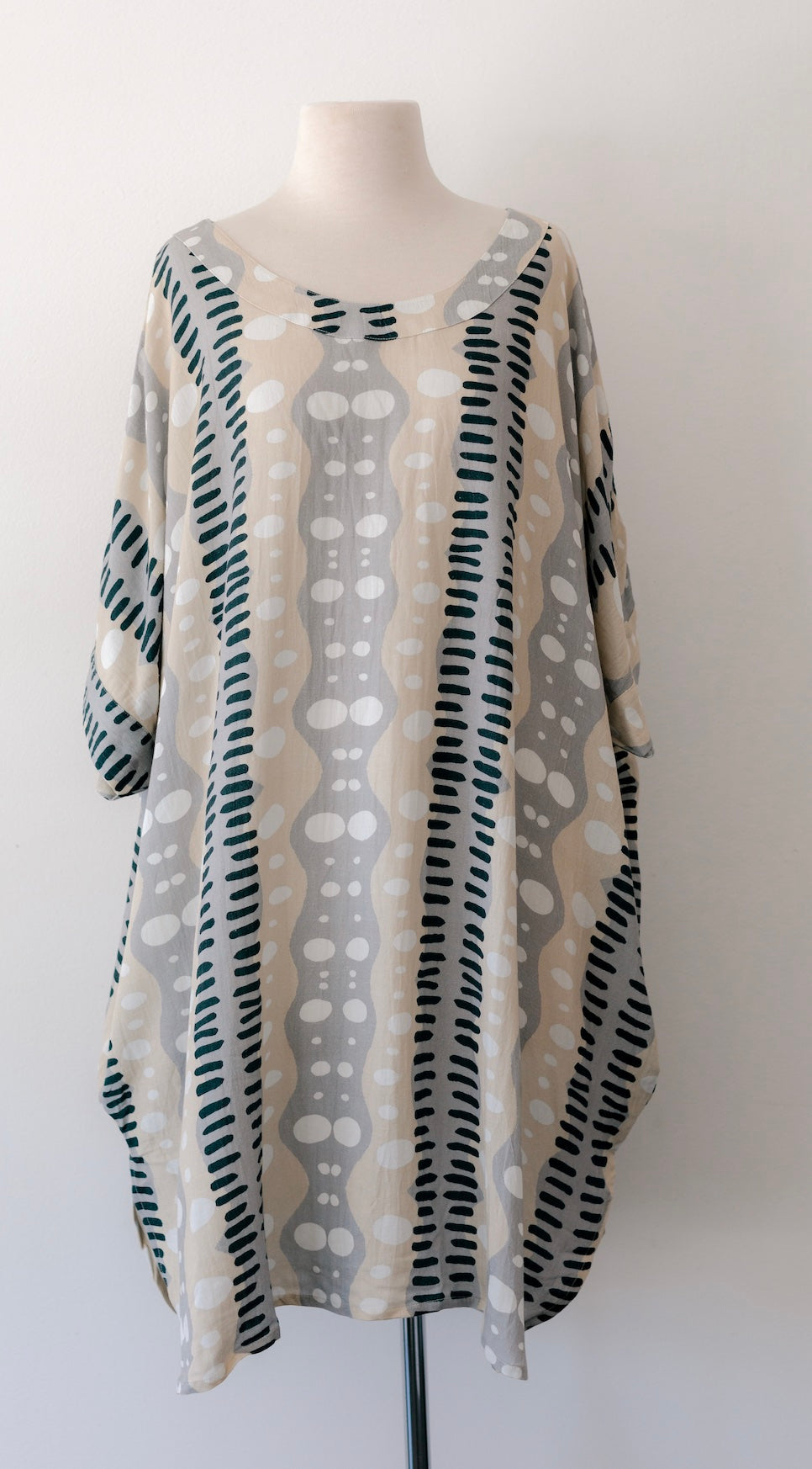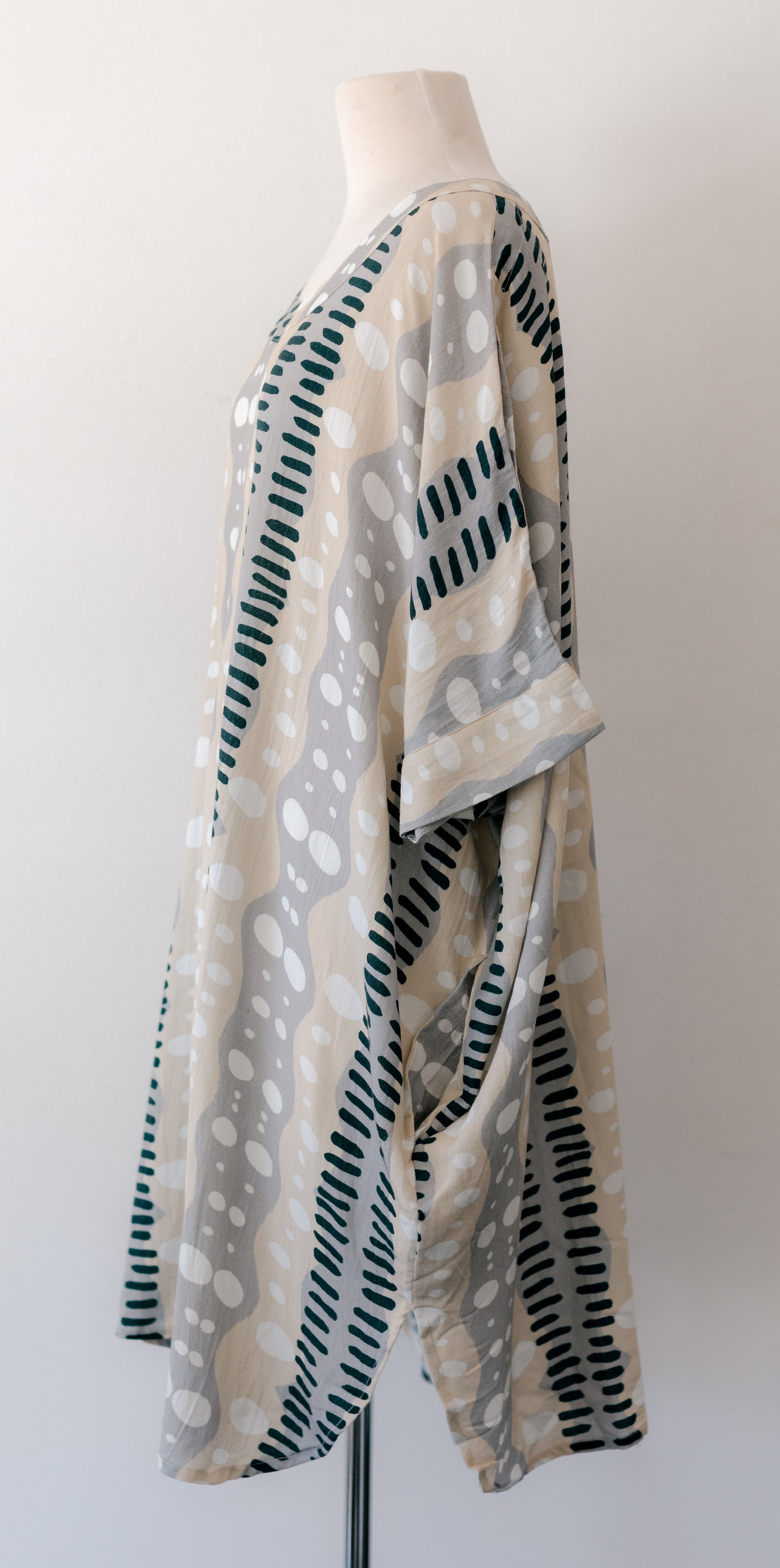 This kaftan was designed by Palawa/Yorta Yorta and Gamilaraay/Wonnarua Artist, Debra Beale.