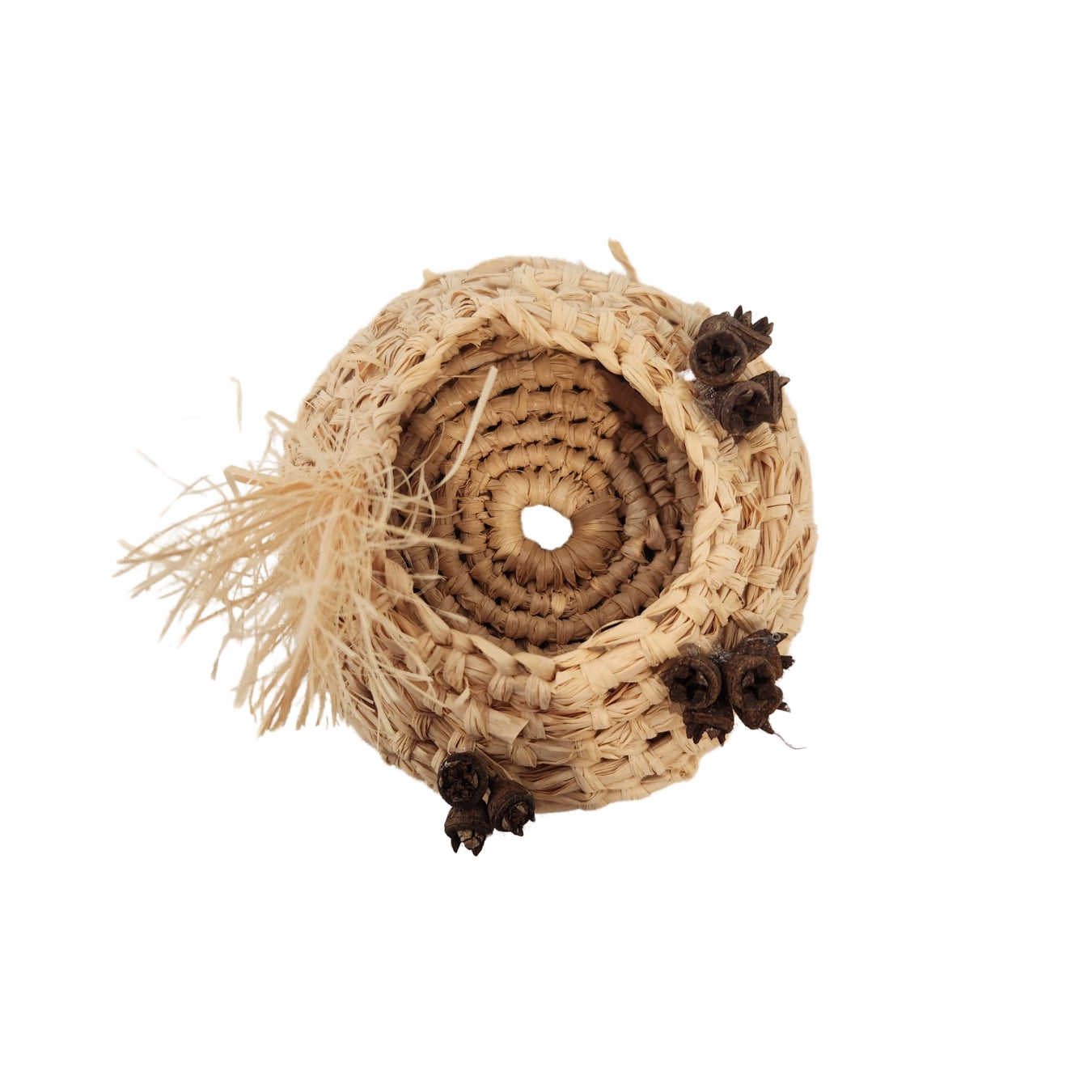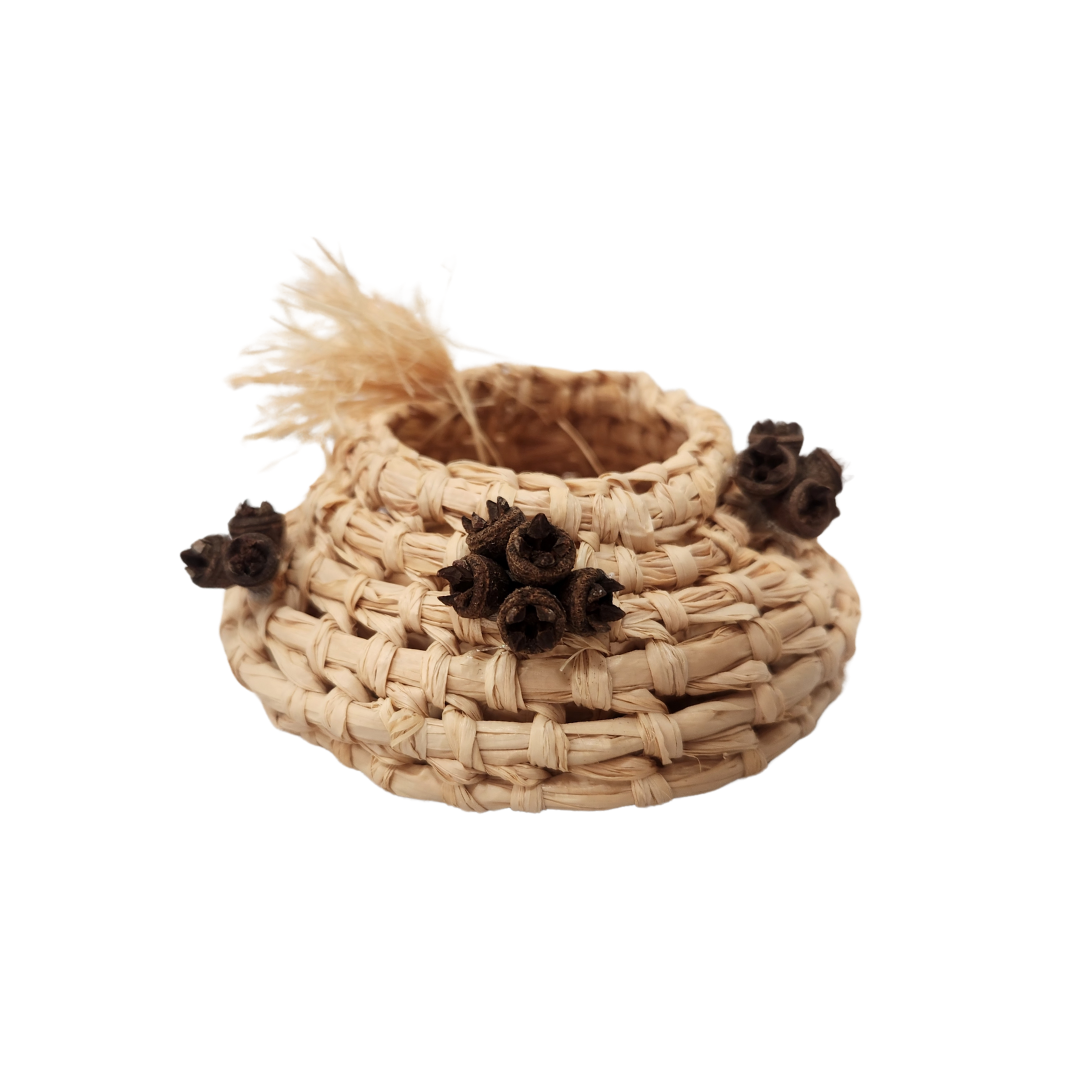 Woven with raffia and adorned with gumnuts.